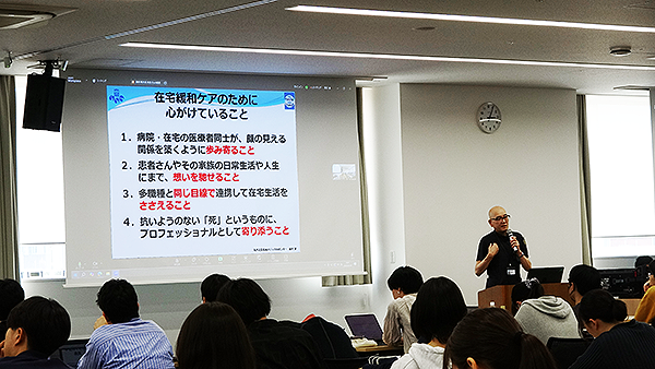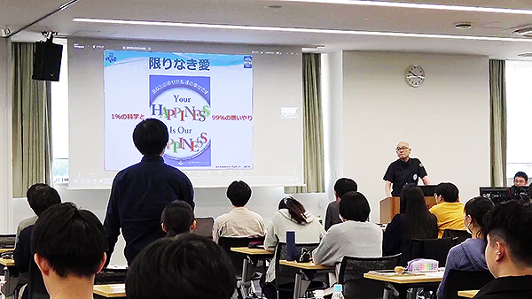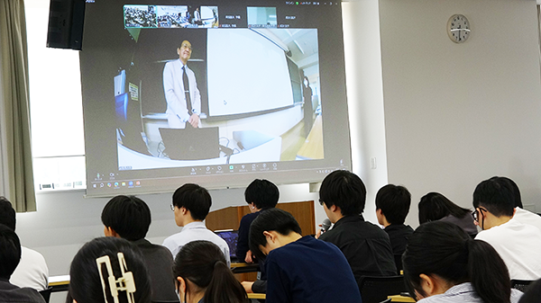 令和7年度も埼玉医科大学・群馬大学の合同授業を行いました。本授業は全4回で構成され、第1回・第2回は、両大学からの講義を一緒に聴講しました。5月21日は群馬大学名誉教授の田村遵一先生による「かしこく健康に生きる」、5月28日は埼玉医科大学教授の齋木実先生による「地域医療とチーム医療~在宅医療の現場から~」をテーマとした講義でした。どちらの授業も学生からの多くの質問が出るなど、学生は真剣に参加していました。