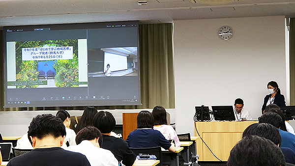 第3回は6月25日に実施され、群馬大学の学生による地域診断の発表がありました。本授業を履修した学生の各チームが自分の担当する群馬県内の自治体について調べた内容と、魅力や課題を紹介しました。第4回は埼玉医科大学の埼玉県地域枠学生が埼玉県内の7つの自治体について地域診断を行った結果を発表し、その後活発な質疑応答が行われました。